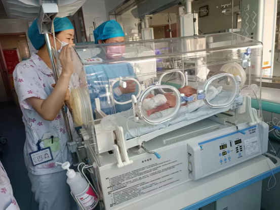 在新生儿病房,医护人员精心布置了家属接待区,播放科普视频。新手父母们可以探秘病房,与自己在院治疗的宝宝近距离接触,护士老师指导他们进行喂奶、沐浴、抚触等。科室还邀请出院的早产小宝贝们“回家”,给他们分发小礼品,免费给他们进行行为测定、骨龄测定,为宝爸宝妈们答疑解惑。