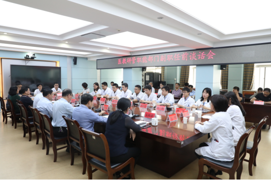 6月6日下午,医院在行政楼五楼第二会议室召开医教研管职能部门副职干部任前谈话会。校党委副书记、院党委书记谢瑞瑾,院长孙倍成,院党委副书记、副院长刘全礼,常务副院长李家斌,副院长费广鹤、王珩、吴晓莉,党委委员、正处级组织员丁长明参加会议,相关职能部门负责人列席会议。会议由孙倍成主持。