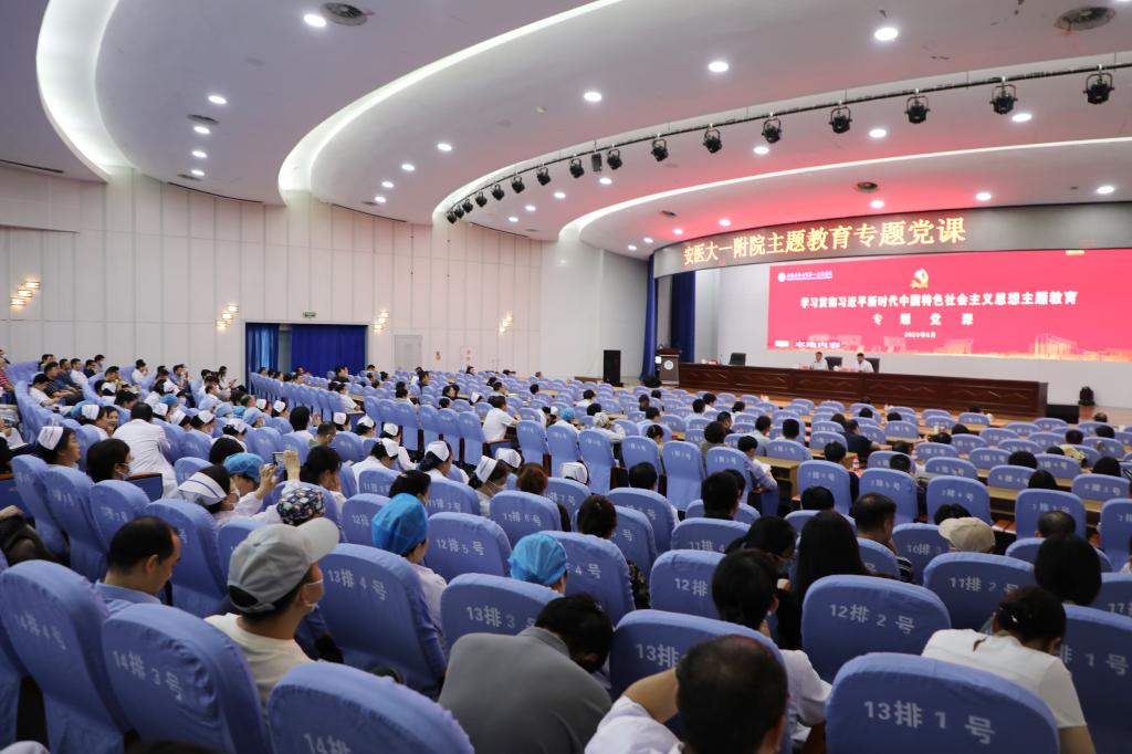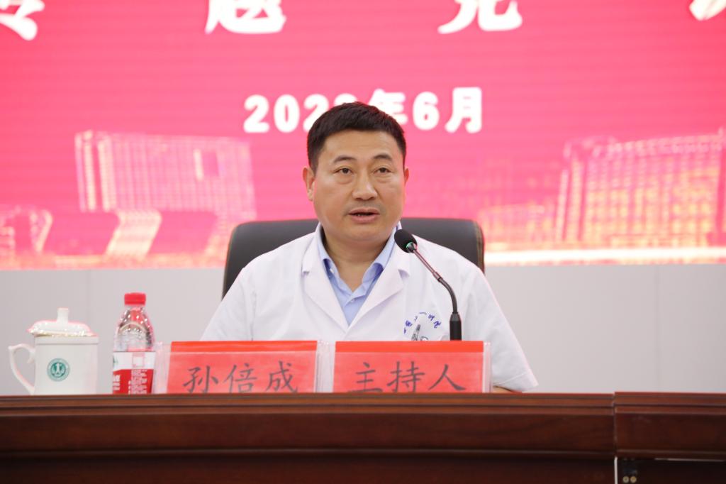 6月14日下午,校党委副书记、院党委书记谢瑞瑾以《学习贯彻习近平新时代中国特色社会主义思想奋力开创医院高质量发展新局面》为题,在内科医技楼会议中心为全院医护职工讲授主题教育专题党课,专题党课由院长孙倍成主持。