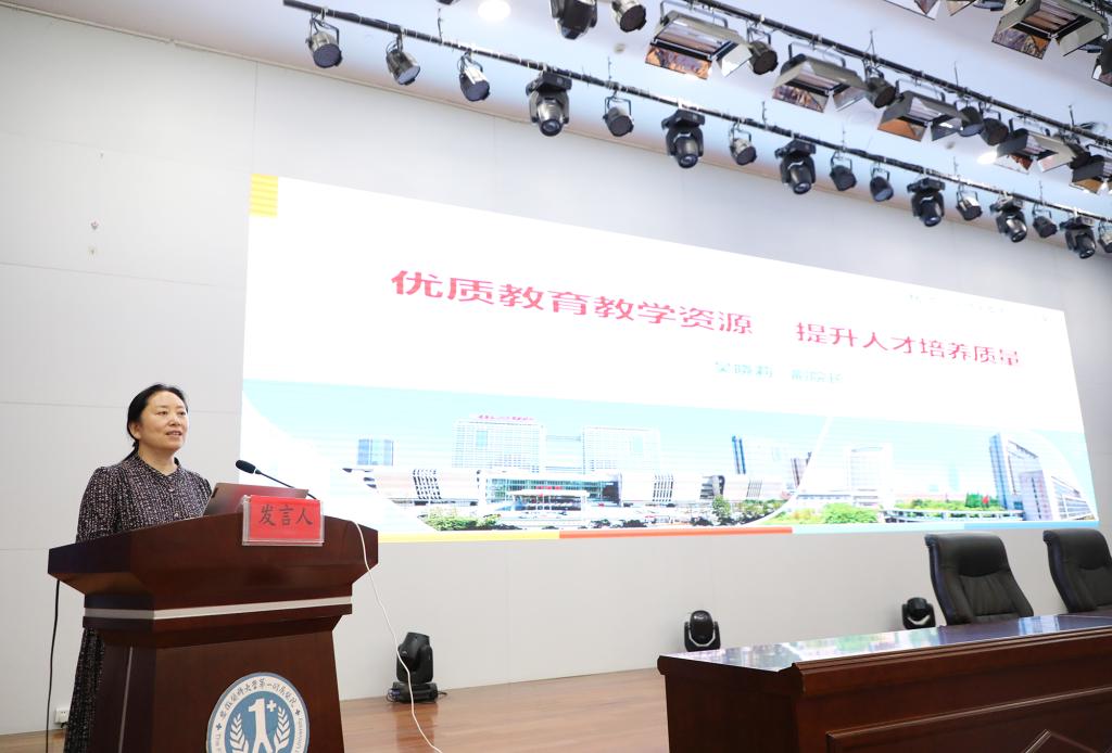 吴晓莉以《优质教学资源提升人才培养质量》为题,分别从医院历史沿革、历史底蕴、医疗服务能力、学科建设、人才建设、教学条件、师资队伍、教学成果等八个方面对医院总体情况及建设发展做了详细介绍。她表示,安医大一附院近百年历史,在一代代安医人的不辍耕耘下形成了勤奋严谨务实求精的钻研精神、百折不挠孜孜向上的进取精神、仁心仁术救世救民的仁爱精神和全心全意爱国爱院的奉献精神。她亲切嘱托同学们,要向先贤前辈学习,不断继承和发扬安医精神,以精神引领学习,以奋斗彰显价值。