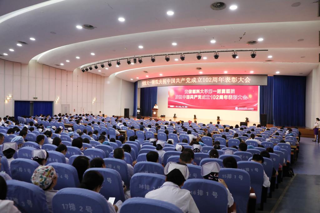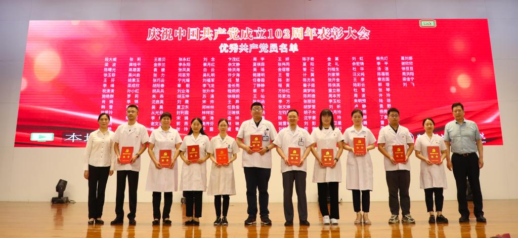为庆祝中国共产党成立102周年,深入推进学习贯彻习近平新时代中国特色社会主义思想主题教育走深走实,6月28日下午,医院在内科医技楼四楼会议中心举行庆祝中国共产党成立102周年表彰大会,对医院2022年度涌现出的先进基层党组织、优秀党务工作者、优秀共产党员进行表彰,并向党龄满50周年的党员同志代表颁发“光荣在党50年”纪念章。