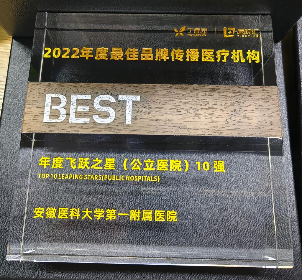 7月20日至22日,由丁香园主办的“2022中国医院发展大会”在杭州召开。会上发布了《2022年度最佳品牌传播医疗机构报告》及榜单。我院荣获“2022年度最佳品牌传播医疗机构(国家/省级)优秀公立医院50强”和“2022年度中国医疗机构品牌传播飞跃之星(公立医院)10强”,位居省内第一。