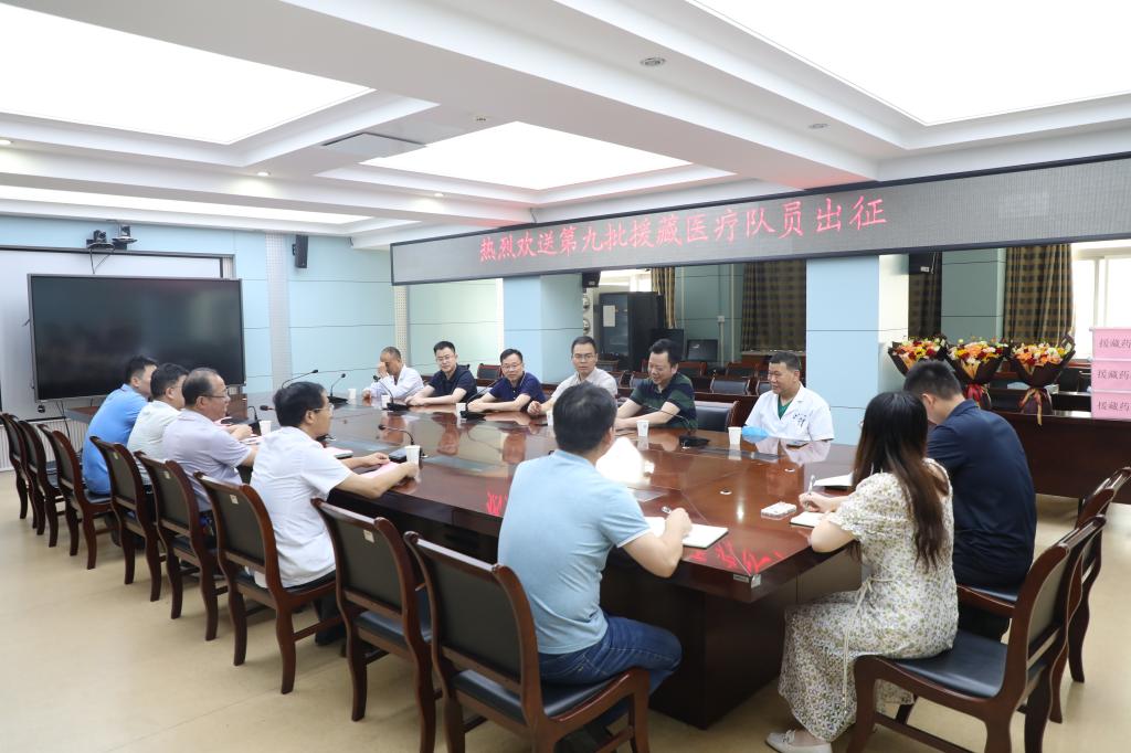 7月26日下午,医院在五楼第二会议室召开第九批“组团式”援藏医疗队员欢送会。党委副书记、副院长刘全礼、常务副院长李家斌出席会议,援藏医疗队员普胸外科刘伟、神经外科张科、皮肤性病科朱正伟以及相关职能处室、科室负责人参加会议,会议由李家斌主持。