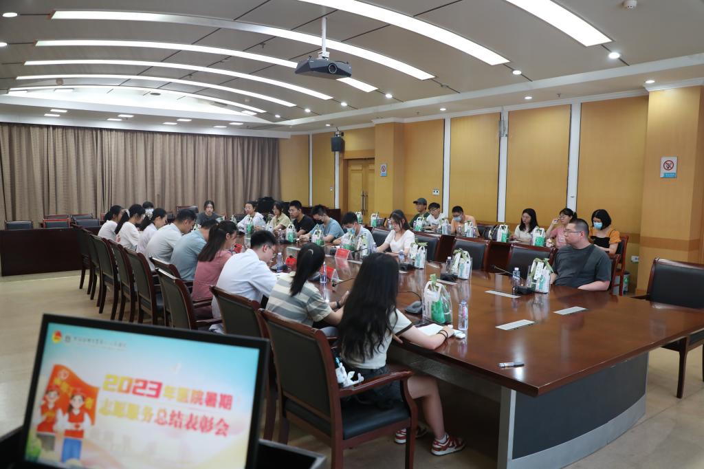 王晓虎在会上介绍了本次医务志愿服务的开展情况。为落实医院“六大提升行动”,积极打造一所“有温度的医院”,助力医院高质量发展,自2023年暑期伊始,院团委在全院医教研管护各领域职工中广泛宣传动员,聚集了60名职工子女志愿者。为期40天的暑期志愿服务,数以千计的志愿服务时长,服务了万余名就医群众,以高质量的志愿服务,彰显了安医人及医二代的风采,给来院就诊的患者带来了温馨的服务和美好的回忆。