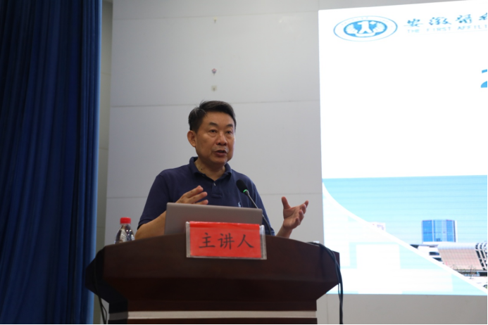 开营仪式后,副院长费广鹤教授、校科技产业处处长王华教授、医学影像科主任李小虎教授等进行了专题报告,报告会由科研处负责人谢峻主持。专题报告内容丰富、深入简出、氛围轻松活跃,涵盖了临床科研能力培养、酒文化与酒精肝的前沿性研究、如何快速适应研究生生活等,以贴合年轻学生的视角,生动有趣地向同学讲述了医学科研的魅力,勉励同学们坚定医学信念,努力成为一名优秀的医学研究生。