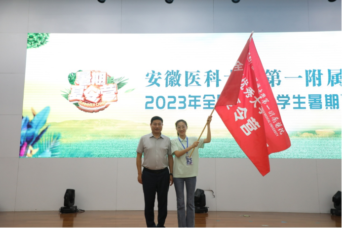 孙倍成在致辞中代表医院向来自全国各高校的入营学员表示热烈欢迎,详细介绍了医院的历史渊源、发展概况、各学科的发展现状、学科特色、人才队伍以及医院未来的规划等。他表示,医院坚持开放办学,欢迎全国优秀的学子踊跃报考,和医院共成长、共进步,在医学道路上取得长足发展。随后,孙倍成为本次夏令营队长进行了授旗并合影。