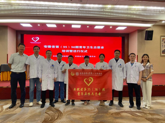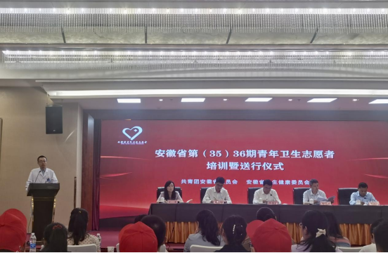 8月31日,团省委、省卫健委第35(36)期青年卫生志愿者培训暨送行仪式在肥举办。团安徽省委书记陈明生出席活动并讲话,安徽省卫生健康委党组成员、副主任马勇出席活动并为青年卫生志愿者代表授旗,团安徽省委副书记张健主持会议。各团市委分管宣传工作或青年志愿者工作的负责同志、各市卫生健康委相关负责同志、各派出医院团委负责人、35(36)期青年卫生志愿者共约200人参会。我院泌尿外科副主任医师杨诚代表全省青年卫生志愿者上台致辞。