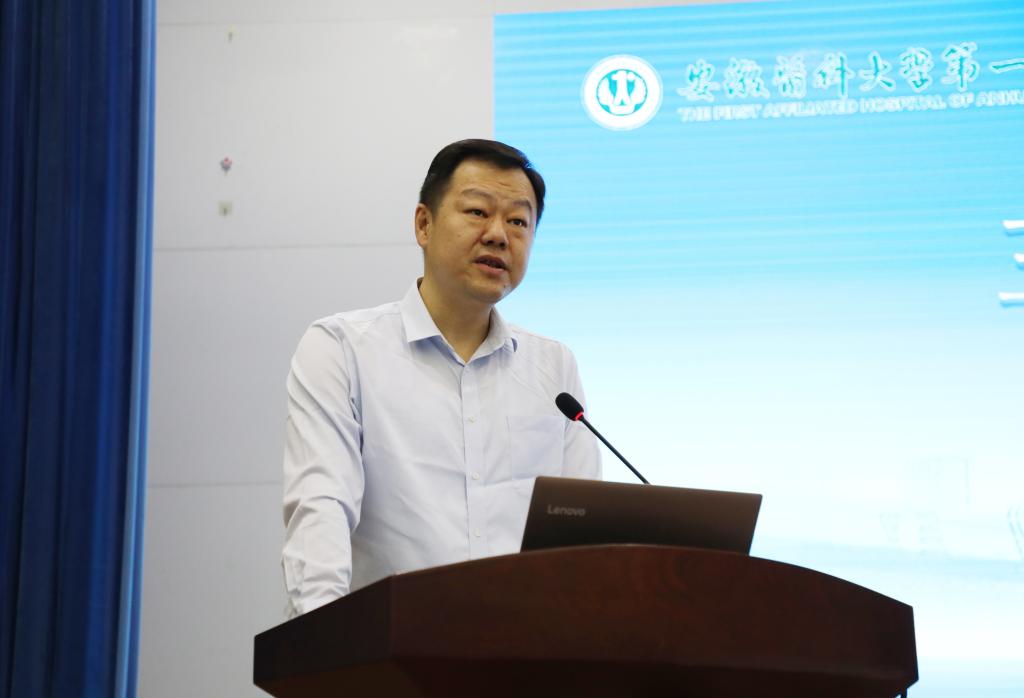 驻省卫健委纪检监察组副组长、一级调研员钟平代表委纪检组强调了评审期间的纪律要求。评审专家组带队领导、省属公立医院监管中心张松卫主任在讲话中强调了等级医院评审的重要意义,要求评审组专家客观公正地对医院的三甲评审准备工作进行评估。评审组组长、皖南医学院第二附属医院院长黄后宝对评审工作进行了任务分工。随后,全体参会人员共同观看了我院宣传片。