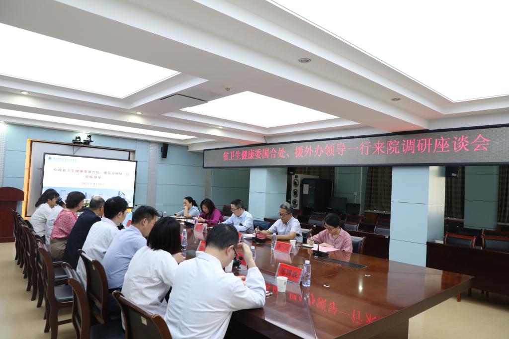 11月2日下午,安徽省卫健委国合处处长姜明、援外办公室主任张松卫等领导一行来院调研国际合作和援外工作相关情况,座谈会在我院行政楼五楼第二会议室召开。总会计师谢峰参加并主持会议。