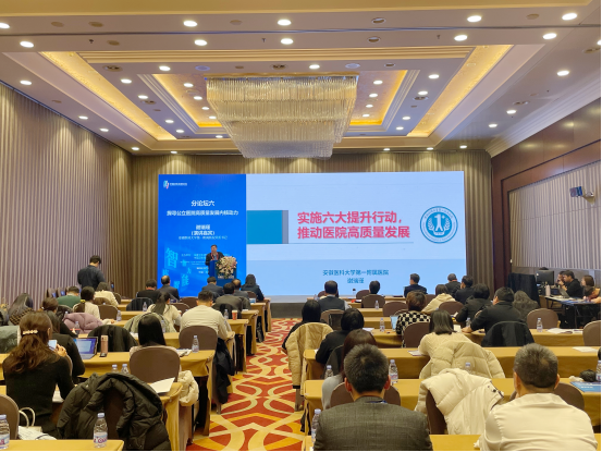在“探寻公立医院高质量发展内核动力”分论坛上,谢瑞瑾以《实施六大提升行动,推动医院高质量发展》为题,从医院基本情况,六大提升行动主要做法、进展及成效,医院高质量发展的思考等方面,分享了我院以高质量党建引领医院高质量发展的做法和经验,得到与会领导、专家、学者的高度赞誉和肯定。