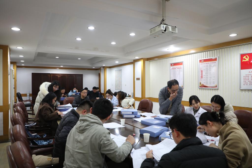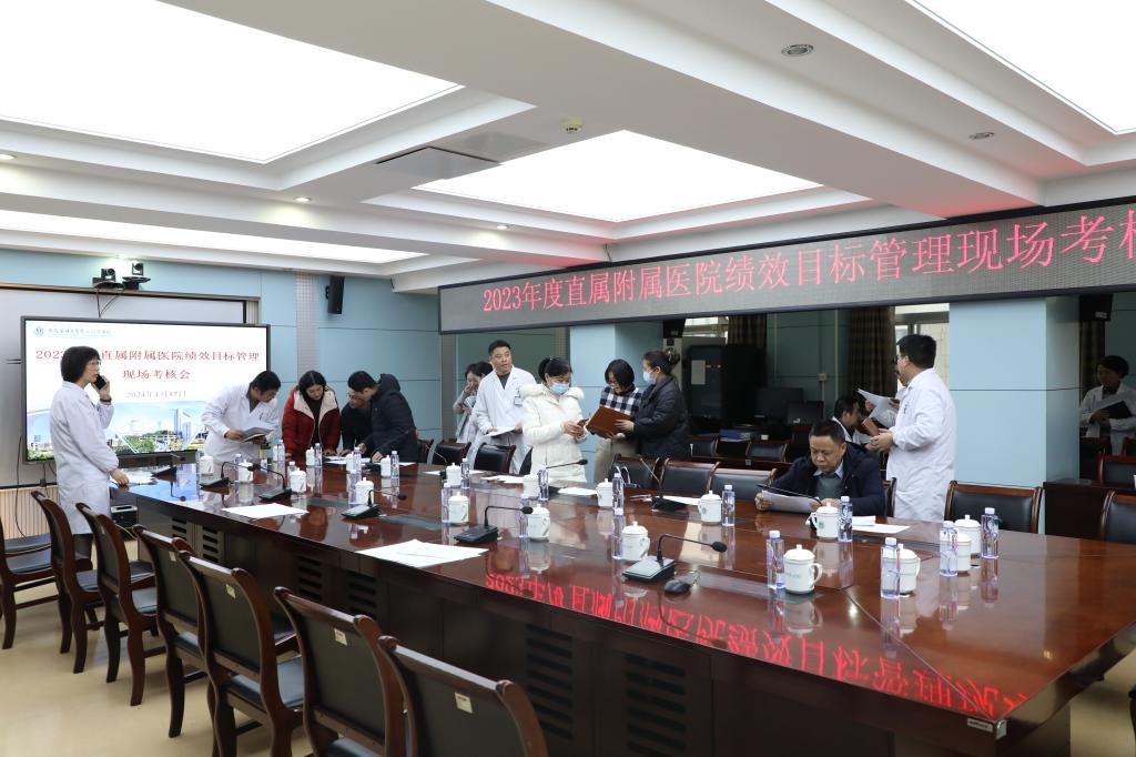 校考核组向现场参会人员发放测评评议表,对医院领导班子、院级领导干部、选人用人工作进行民主测评和评议。会后,校考核组通过现场查看资料的方式,对医院2023年度党建工作、绩效目标完成情况进行分组考核。