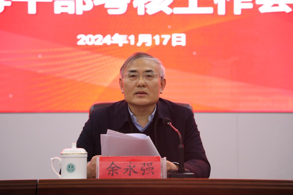 1月17日下午,学校党委常委、副校长余永强带领学校考核组成员,对我院领导班子和院级领导干部进行年度考核,同时对医院2023年度党建工作、绩效目标、干部选拔任用工作进行考核。医院在会议中心举行了领导班子述职会议,校党委副书记、院党委书记谢瑞瑾代表医院党委和行政作党建工作和绩效目标工作综合汇报,院长孙倍成主持会议。