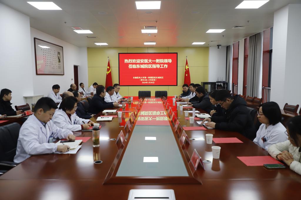 座谈会上,费广鹤对院区近年来锐意进取、推进高质量发展所取得的各项成绩予以肯定。他指出,东城院区是肥东县域医院的龙头医疗机构,在发展卫生事业、守护人民群众身体健康方面发挥着重要作用。他强调,此次调研旨在针对东城院区薄弱学科,再次选派精兵强将进行精准帮扶,专家到岗后将充分发挥第一主任的专业技术和引领作用,让肥东百姓在家门口就能享受到省级专家“高水平、同质化”的优质服务。他希望东城院区抓住合作机遇,提升管理经验和医疗技术,更好满足肥东县域人民对优质医疗服务的需求,为肥东医疗卫生事业作出更大贡献。