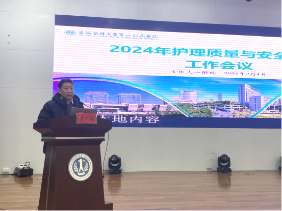 2月4日上午,医院在内科医技楼四楼会议中心召开2024年度三院区质量与安全管理大会暨年度护士长会议,副院长费广鹤出席会议并讲话。会议由护理部主任胡少华主持,高新院区护理部副主任韩江英、南区护理部主任张秀梅、护理部副主任任春霞及全体护士长、质控护士分院区参加会议,三院区同步线上直播。