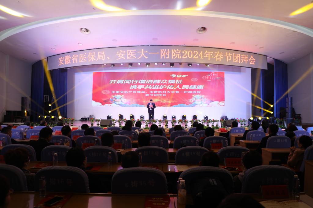 迎甲辰新岁,扬龙马精神。2月7日下午,医院和省医保局联合举办了“并肩同行增进群众福祉 携手共进护佑人民健康”2024年春节团拜会。省医保局领导金维加、徐翔东、王俊、陈骏和医院党政领导班子出席团拜会。省医保局党组成员、副局长徐翔东、校党委副书记、院党委书记谢瑞瑾分别代表省医保局和医院致辞。团拜会由院长孙倍成主持。
