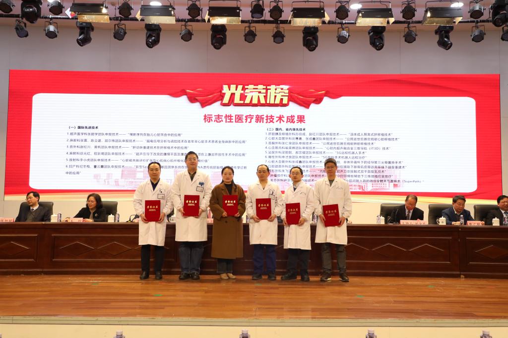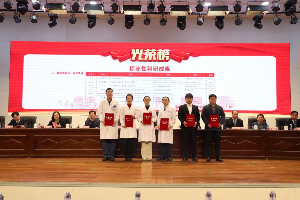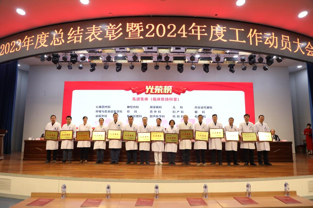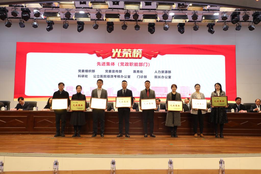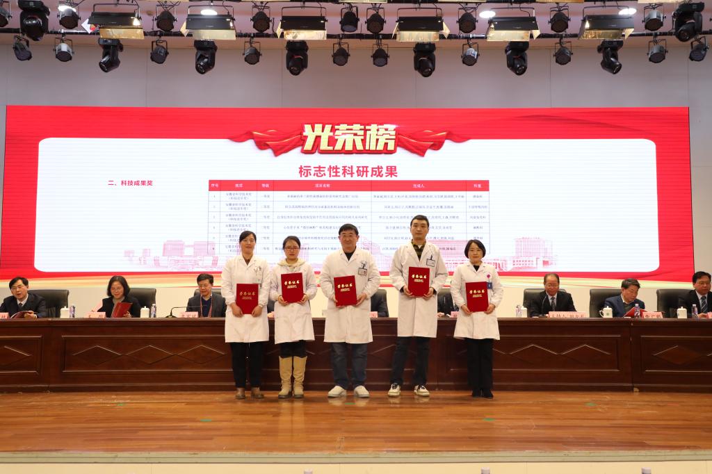 常务副院长李家斌宣读医院表彰决定。与会领导为获奖先进集体、先进工作者代表和标志性成果获得者颁奖。