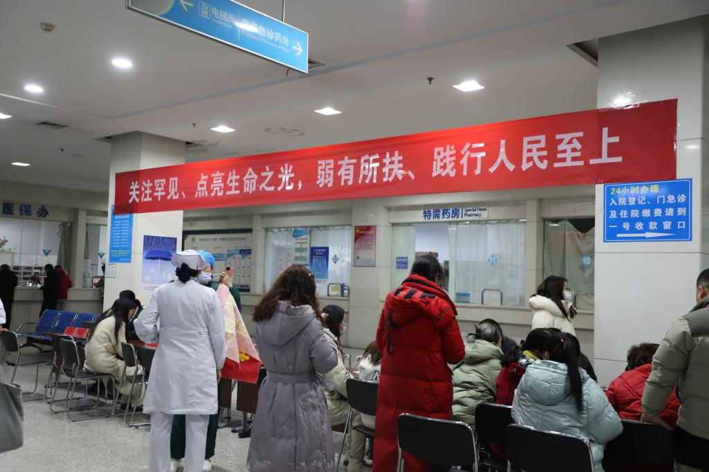 2月29日,在内科医技楼一楼大厅开展罕见病大型义诊活动。来自血液内科、神经内科、小儿神经康复中心、内分泌科罕见病领域的10位知名专家现场坐诊,100余位罕见病患者顶着寒风和阴雨天气赶到义诊现场,义诊专家为他们作了详细解答。