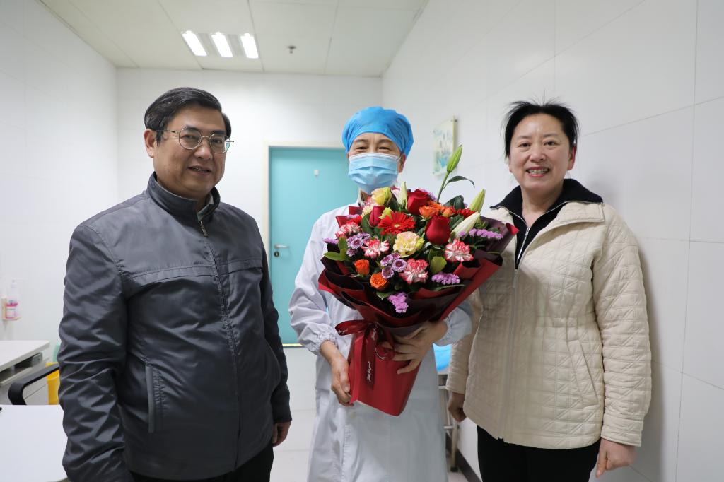 3月8日上午,校党委副书记、院党委书记谢瑞瑾,院长孙倍成,副院长吴晓莉等一行实地慰问了“三八妇女节”坚守临床一线的女职工代表,为她们送上鲜花,带去节日的祝福与问候。