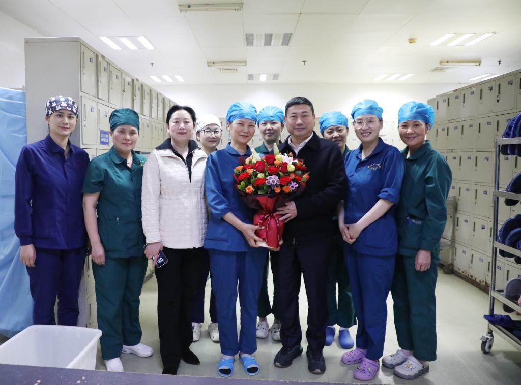 院领导分别来到绩溪路门诊、干部呼吸与危重症医学科、手术室一部、耳鼻咽喉头颈外科一病区、ICU等科室,为丛林、桂明、潘孝华、范晓云、孙梅林、沈启玲、付红等女同志和科室女职工团队送上鲜花和节日祝福。院领导亲切看望了正在忙碌中的女职工,感谢她们为医院发展做出的奉献,勉励她们继续努力,以严谨的工作态度、精湛的技术、优质的服务,兢兢业业、勤勤恳恳,为医院的高质量发展做出新的贡献。