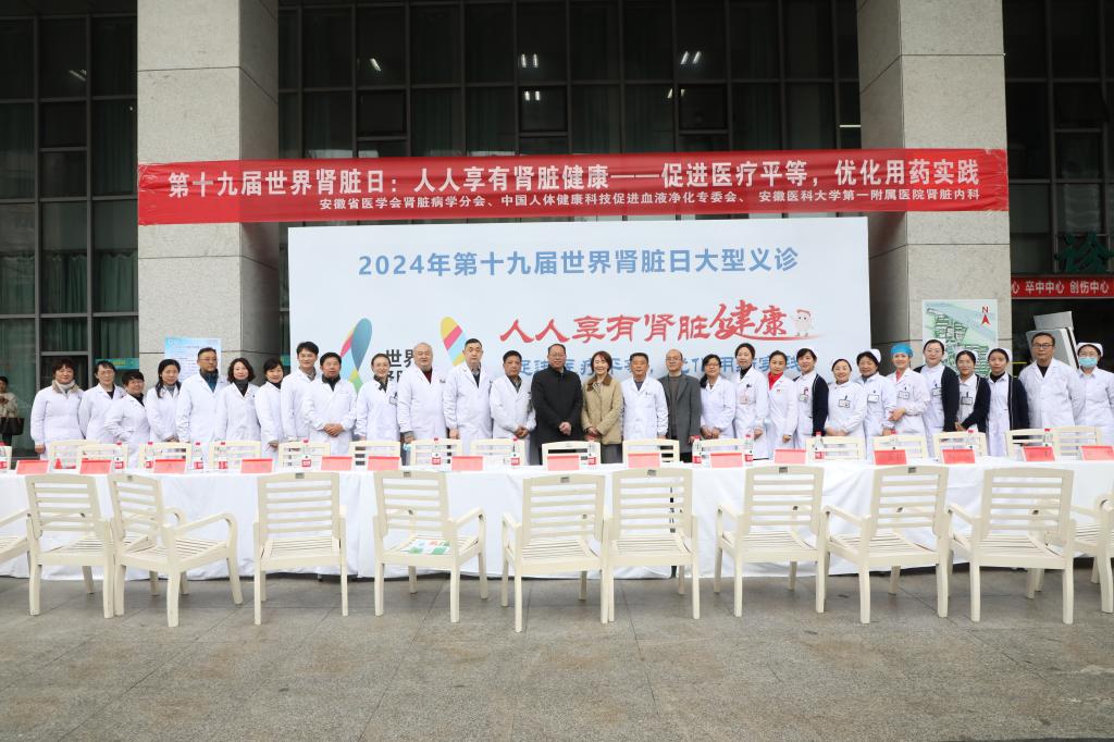 3月14日是第十九届“世界肾脏日”,今年的主题是:人人享有肾脏健康---促进医疗平等,优化用药实践。安徽省医学会肾脏病学分会、我院肾脏内科开展了包括义诊、健康教育讲座、播放科普视频、发放科普资料等多种形式的活动,院党委副书记刘全礼、安徽省医学会秘书长方娟及学术会务部主任孙士伟前往义诊现场看望慰问医护员工。