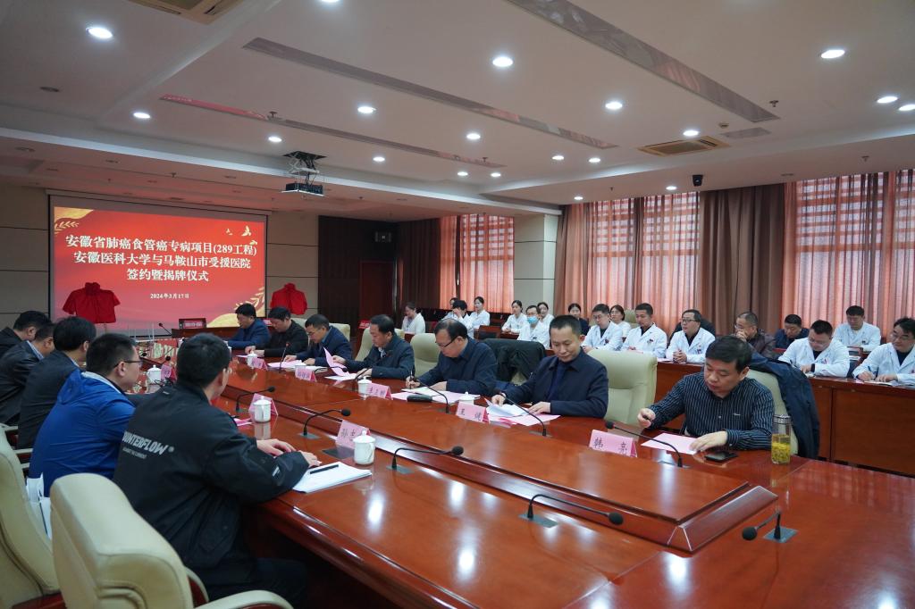 3月17日,副院长陈旭林率专家团队赴马鞍山市开展肺癌食管癌专病项目揭牌活动。我院普胸外科主任张仁泉、普胸外科支部书记、病区主任潘华光、医务处院际医疗管理部主任袁克勇等陪同参加。马鞍山市卫健委、马鞍山市人民医院、含山县人民医院、和县人民医院、当涂县人民医院相关负责同志参加此次对接活动。