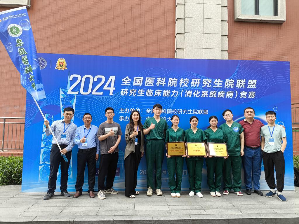 4月10日至12日,经过三天高强度的激烈角逐,由我院组队的安徽医科大学研究生代表队在2024年度全国医科院校研究生院联盟临床能力(消化系病)竞赛中获大赛团体二等奖、科研课题设计最佳风采奖、科普作品最佳人气奖三个奖项。