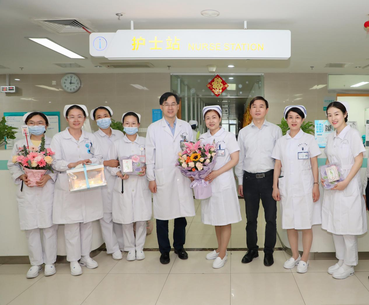 一声声祝福,一束束鲜花,饱含医院的深切关怀和殷切期望。大家纷纷表示,将继续以“六大提升行动”为导向,认真履行岗位职责,加强业务学习,提高自身素质,勇于创新实践,为病人提供全程、优质、高效的护理服务,为推动医院高质量发展贡献自己的智慧和力量。