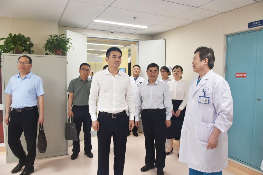 王琦一行实地考察了医院南区门诊、检验科、医学影像科及骨科等科室,深入了解各科室人员派驻情况及医务人员工作和生活情况,并对派驻人员进行亲切慰问。