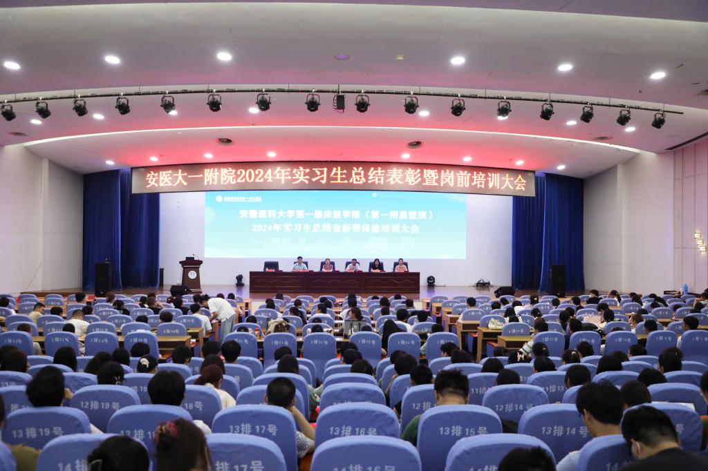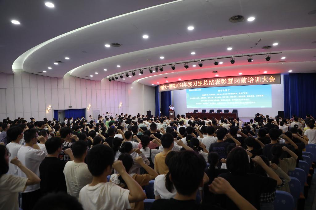 会上,第一临床医学院学生工作部副部长孙民宣读了《安徽医科大学第一附属医院关于表彰2024年度优秀实习生、优秀实习队长的通知》,主席台领导给优秀实习生、优秀实习队长颁发荣誉证书,优秀实习生代表赵子嫣、临床带教老师代表徐鹏分别上台分享个人心得体会。教育处副处长陈博带领实习生重温医学生誓言,同学们纷纷举起右拳,以饱满的热情庄严宣誓。
