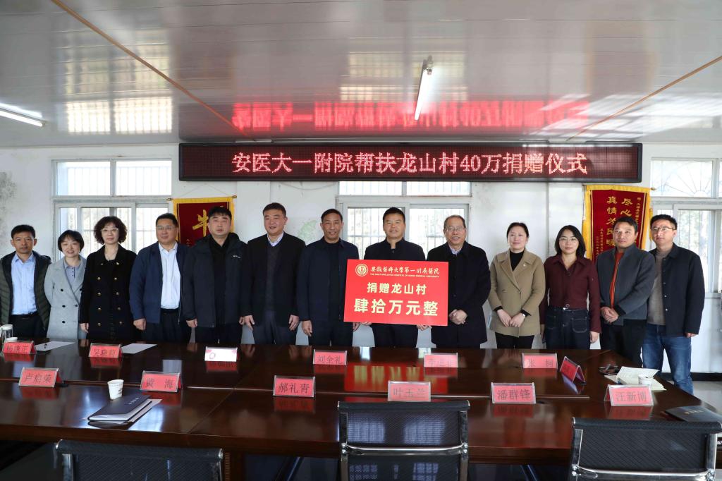 调研过程中,院领导一行还实地查看了龙山村村史馆、文化广场、农产品加工厂等,实地考察了龙山村省级美丽乡村建设情况,并代表医院向龙山村捐赠帮扶资金40万元。
