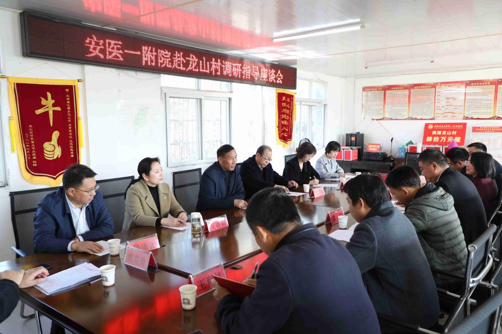 在听取驻村第一书记黄海帮扶情况汇报后,徐朝阳对龙山村建设取得的的成效表示肯定。他指出,近年来龙山村发生了翻天覆地的变化,经济从弱变强,村民安居乐业,安医大一附院作为参与者、见证者感到非常欣慰。