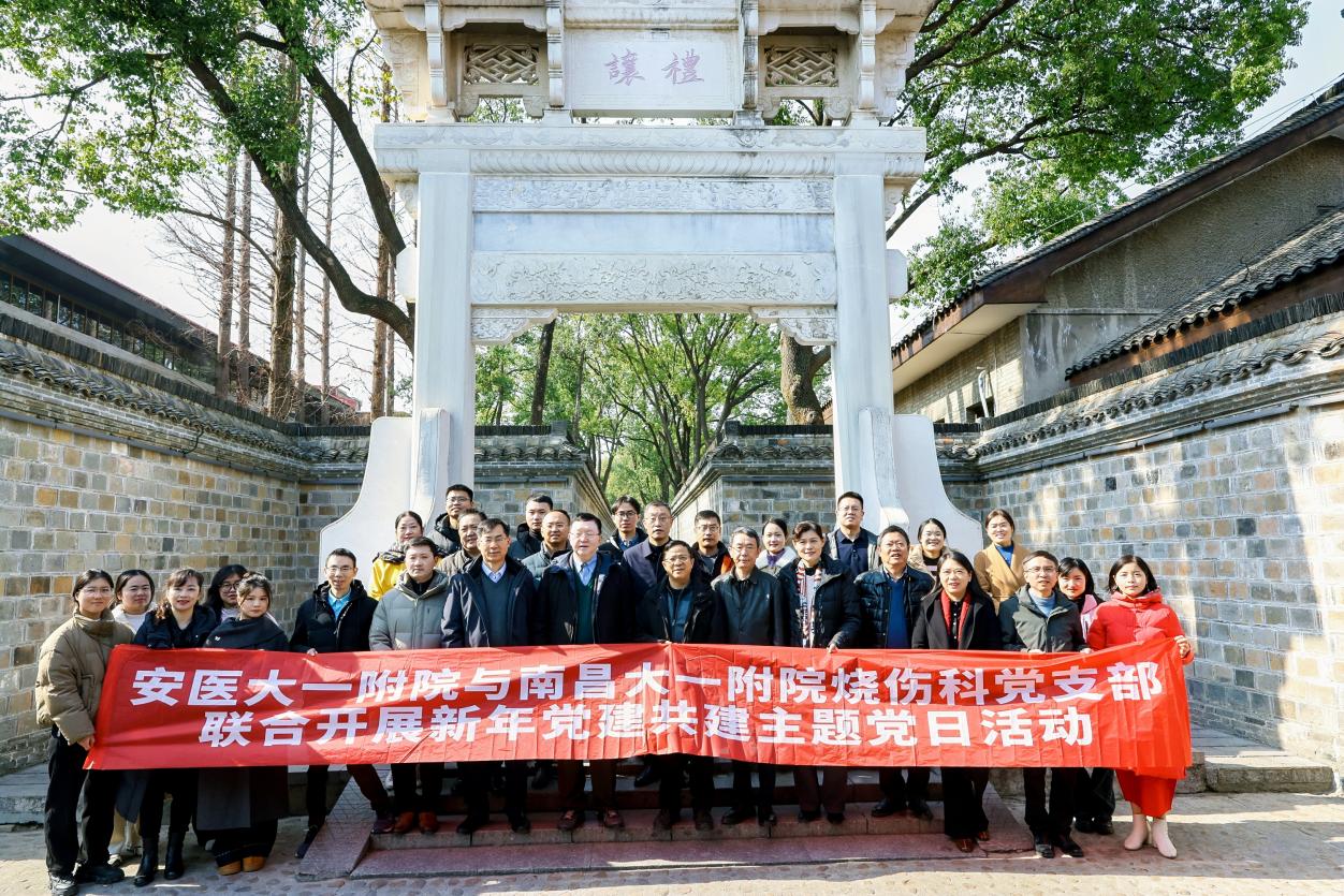 1月11日-12日,烧伤科党支部与南昌大学附属第一医院烧伤科党支部联合开展“新年党建共建主题党日活动”。副院长、高新院区党委书记、院长、安贞医院安徽医院党委书记陈旭林出席活动。烧伤科负责人、党支部书记孙业祥,江西省烧伤研究所所长、中华老年医学学会烧创伤分会主委郭光华,南昌大学第一附属医院烧伤科主任、党支部书记、中华医学会烧伤分会副主委张红艳,中华医学会疼痛分会主委、疼痛科主任张达颖教授等来自两所医院共40余名全国知名专家、党员参加活动。