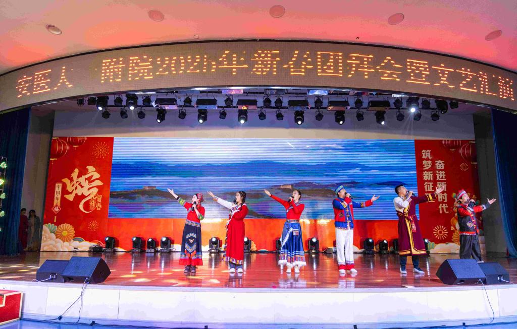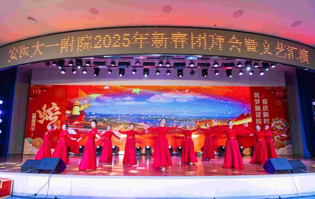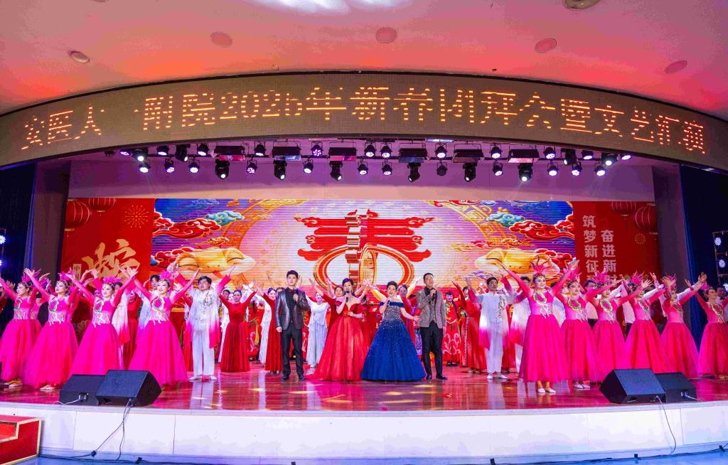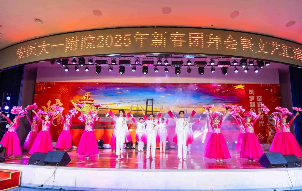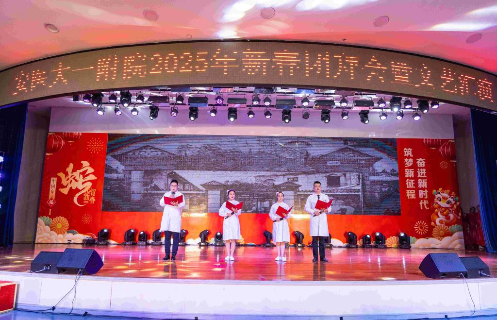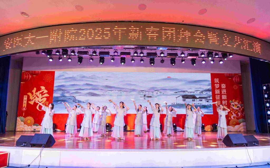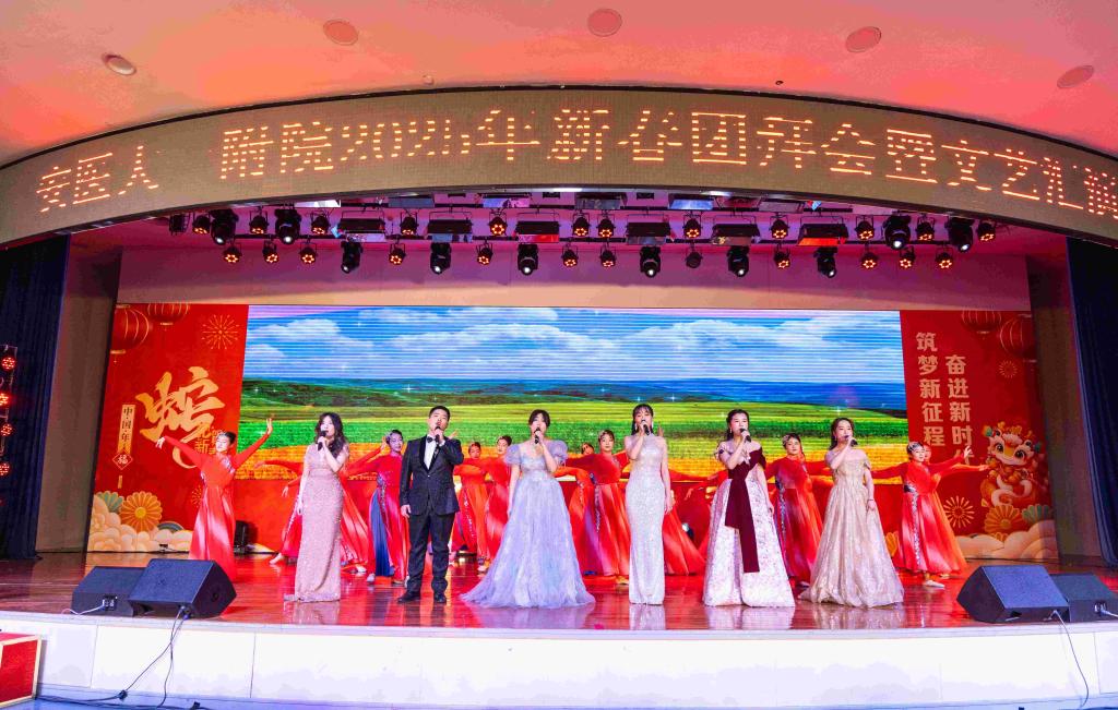 总结表彰暨工作部署会后,“筑梦新征程 奋进新时代”2025年新春团拜会暨文艺汇演在会场举行。徐朝阳、孙倍成带领医院领导班子向全院职工拜年,向一年来为医院建设发展作出贡献的全体师生医护员工致以崇高敬意和衷心感谢。