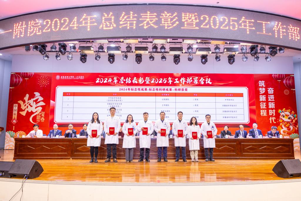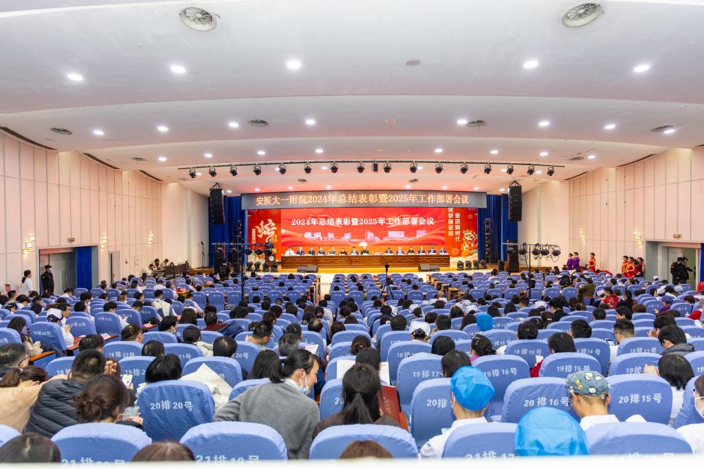 1月22日下午,医院在内科医技楼四楼会议中心召开2024年度总结表彰暨2025年度工作部署会议。安徽医科大学校长翁建平出席会议并讲话,校党委副书记、院党委书记徐朝阳发表讲话,院党委副书记、院长孙倍成作2024年度工作总结及2025年度工作安排部署,学校办公室主任李震静参加会议。会议由院党委副书记、副院长李阳新主持。