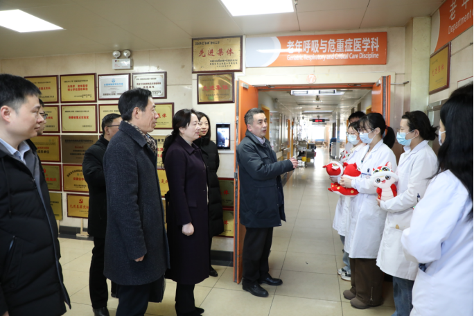 蛇年春节到来之际,学校、医院心系在岗实习生,1月27日上午,学校副校长吕雄文,校党委副书记、院党委书记徐朝阳,校教务处处长解雪峰、副院长吴晓莉等赴全院各临床科室走访慰问在岗实习生,为春节期间坚守岗位的实习生送去新春祝福和温暖关怀。第一临床医学院学生党总支、第二临床医学院学生党总支、医院教育处相关负责人陪同参加。