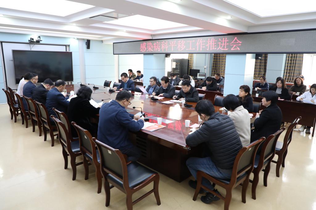 3月6日,医院在行政楼五楼第二会议室召开感染病科平移工作推进会,校党委副书记、院党委书记徐朝阳,副院长王珩,副院长、高新院区党委书记、院长陈旭林,正处级组织员、南区党委书记丁长明出席会议,北区执行院长李永怀,北区副院长郜玉峰,医院和北区相关职能部门、临床医技科室负责人参加会议。会议由陈旭林主持。