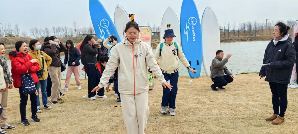 在明媚的春光中,大家畅快呼吸着新鲜的春日气息,一起健步向前,一路欢声笑语。医院工会还准备了趣味运动项目,吸引了各位女职工参加。在热烈欢乐的气氛中,大家你追我赶,争先恐后,为各自的团队争取成绩。经过激烈角逐,最终决出一等奖1个,二等奖2个,三等奖3个。下午,在制作手工团扇的帐篷里,在绘制肌理画的画室内,在围炉煮茶的木桌边,女职工有的耐心细致地粘贴着扇面,有的一笔一画地描绘着美丽,也有的在“咕嘟咕嘟”的煮茶炉边与三五同事喃喃细语,共话友情。春光里,留下了一帧帧美好的画面。