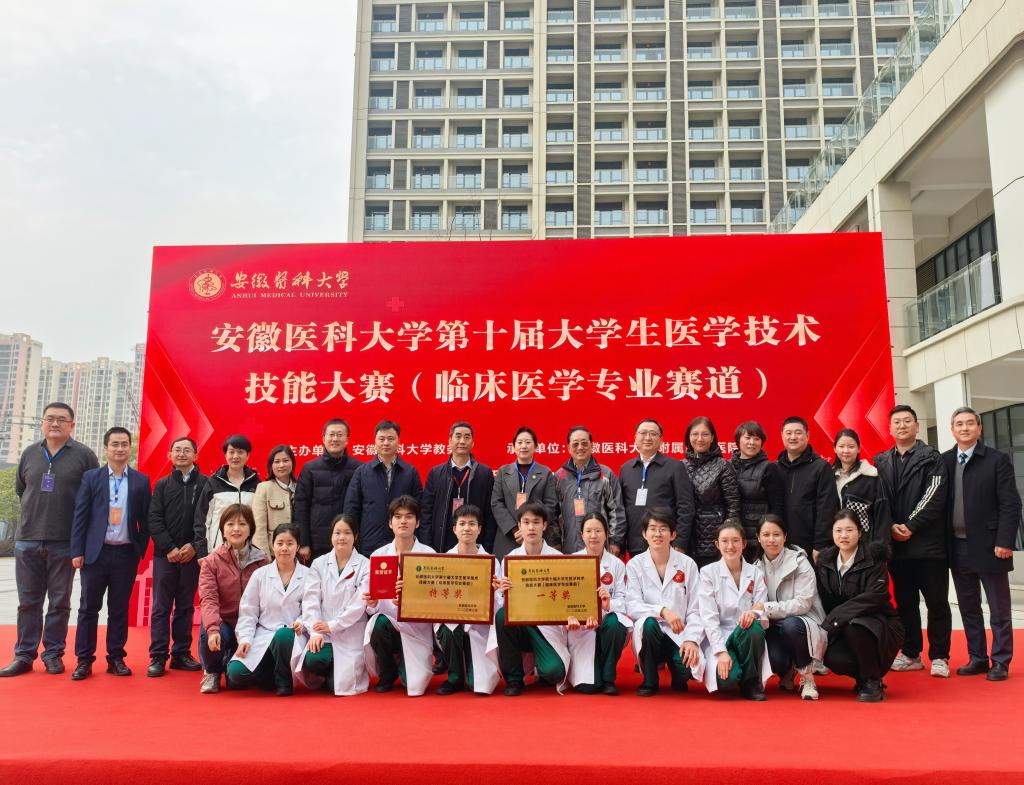 3月9日,安徽医科大学第十届大学生医学技术技能大赛临床医学专业五年制赛道竞赛在附属阜阳医院临床医学院体育馆举行,副院长吴晓莉出席比赛并给予参赛选手关心指导。我院两支代表队在比赛中表现卓越,成功斩获特等奖和一等奖,载誉而归。