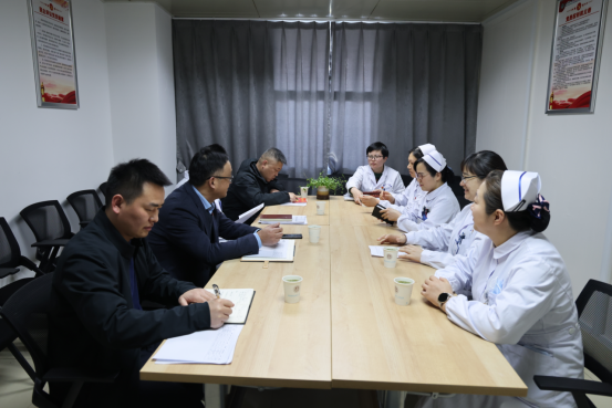 丁长明实地查看了南区妇科、儿科等处,与医护人员现场交流,详细了解病区的医疗业务发展、病房设施等情况。南区妇儿党支部围绕支部工作现状及基本情况、党支部党员作用发挥情况、党建业务融合互促情况三个方面进行详细汇报,总结党建与业务工作成绩,分析困难和不足,对标对表制定改进措施。