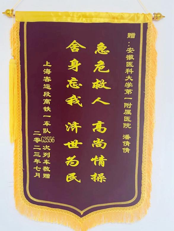 抵达北京后,低调的她并没有与大家提及救人的事情,直到高铁车队工作人员把锦旗寄到科室后,同事们才知道她救死扶伤的先进事迹。在潘倩倩看来,抢救患者不仅仅只存在于手术室里,在生活中要始终谨记自己的工作职责和使命,随时准备着抢救病人的生命,给他们创造生的希望。