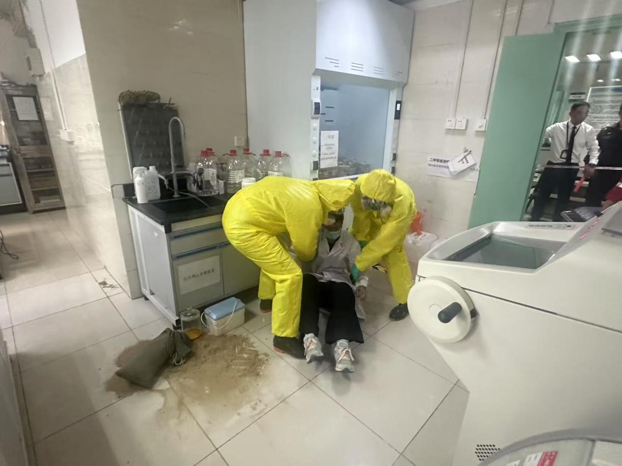 为进一步提升医院危化品泄漏事件的快速响应与处置能力,4月17日下午,医院在科教楼八楼实验室举行危化品泄露事故处置应急演练。本次演练是医院开展“全民国家安全日”系列主题活动之一,由保卫处及三里庵派出所组织策划,院党委委员、正处级组织员、南区党委书记丁长明担任演练总指挥,国家卫健委配子及生殖道异常研究重点实验室、安保公司及职能处室负责人等共50余人参加演练。