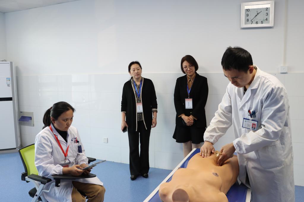 巡视过程中,吴晓莉认真观摩了学生操作,并与考官、考务人员深入交流。她表示,此次考核工作在校教务处(实验教学中心)的指导下,各位考官、教育处工作人员的共同努力配合下,组织井然有序、保障高效有力。她强调,医院将以考核为契机,进一步深化临床实践教学改革,持续提升医学生的临床实践能力和综合素质,培养医德高尚、技术过硬的栋梁之才。