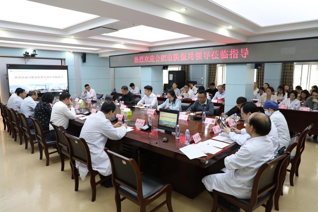 5月23日上午,合肥市医保局党组书记、局长唐世金,市医保局待遇处副处长李晓雅、市医保中心规划科科长赵先亮等一行莅临我院调研DRG付费管理工作。院长孙倍成、副院长王珩、总会计师谢峰及南区院长陈明卫陪同调研,会议由王珩主持。