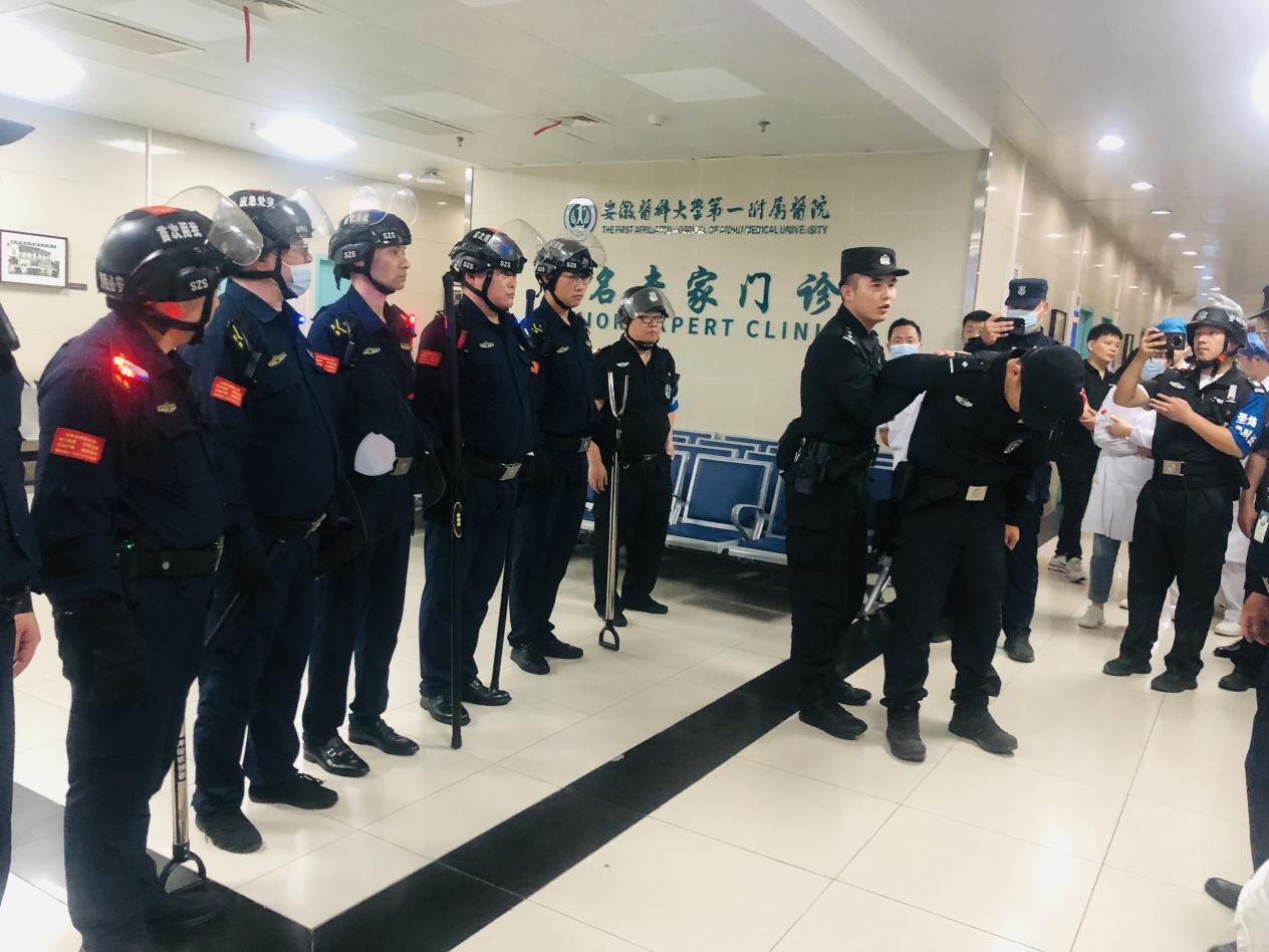 保卫处、医务处、护理部、门诊部、医护人员代表、各院区安保公司主要负责人及应急处突人员等共60余人参与培训和演练。