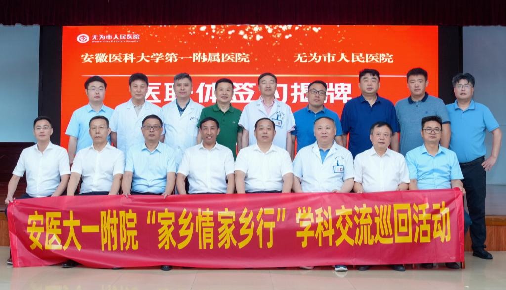 6月13日上午,校党委副书记、院党委书记徐朝阳,院党委委员、正处级组织员、南区党委书记丁长明,高新院区副院长徐阿曼等人一行赴无为市人民医院开展医联体合作对接暨“家乡情 家乡行”学科交流巡回活动。无为市副市长、市委卫健工委书记钱刚出席对接会。会议由无为市人民医院党委副书记、院长王荣生主持。
