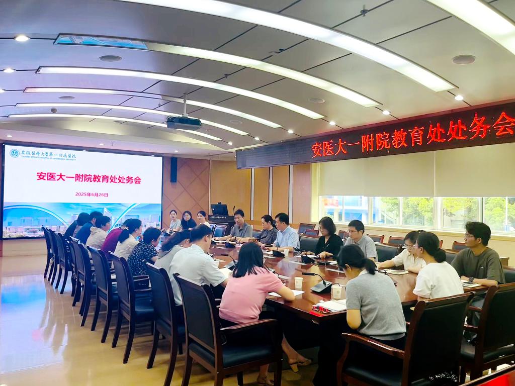 6月26日上午,教育处在医学保健中心会议室召开处务会,副院长吴晓莉出席会议并讲话,会议由教育处负责人王继年主持,教育处全体成员参加。