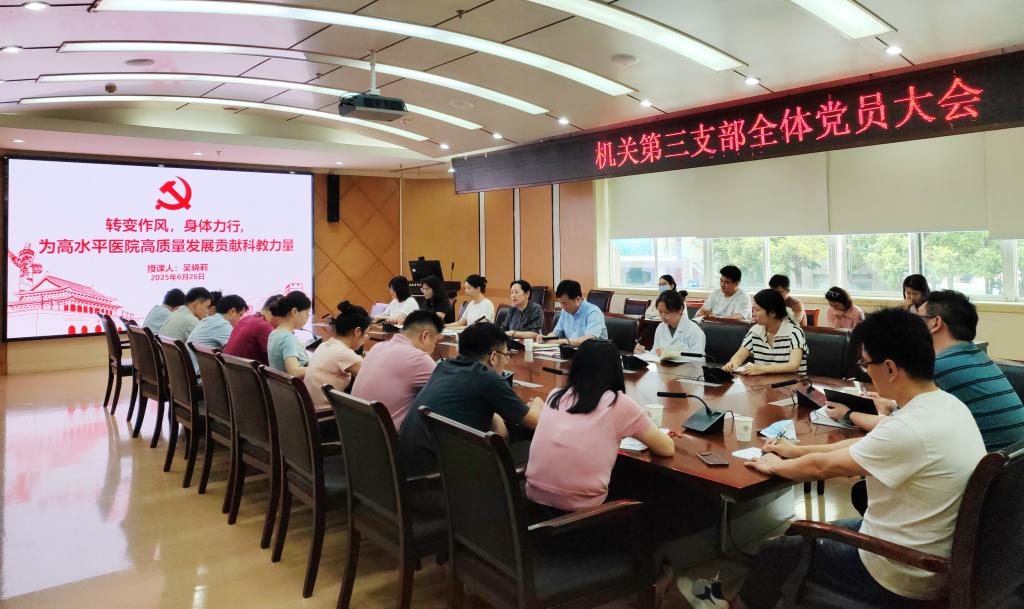 吴晓莉结合个人学习感悟和实际工作内容,以《转变作风,身体力行,为高水平医院高质量发展贡献科教力量》为题,围绕深入贯彻中央八项规定精神学习教育,回顾了党的百年风雨历程,从医疗、教学、科研三方面,为全体党员指明了奋斗方向,激发了同志们的学习热情。