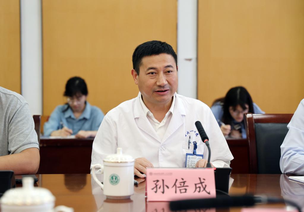孙倍成首先代表医院对孔庆龙行长一行的到来表示欢迎,系统介绍了我院近百年薪火相传的发展历程。他指出,从1926年沪上肇始到今天“一院多区”协同发展,我院已形成同质化管理的办院格局,期待与徽商银行开展更深层次、更高能级的战略合作。