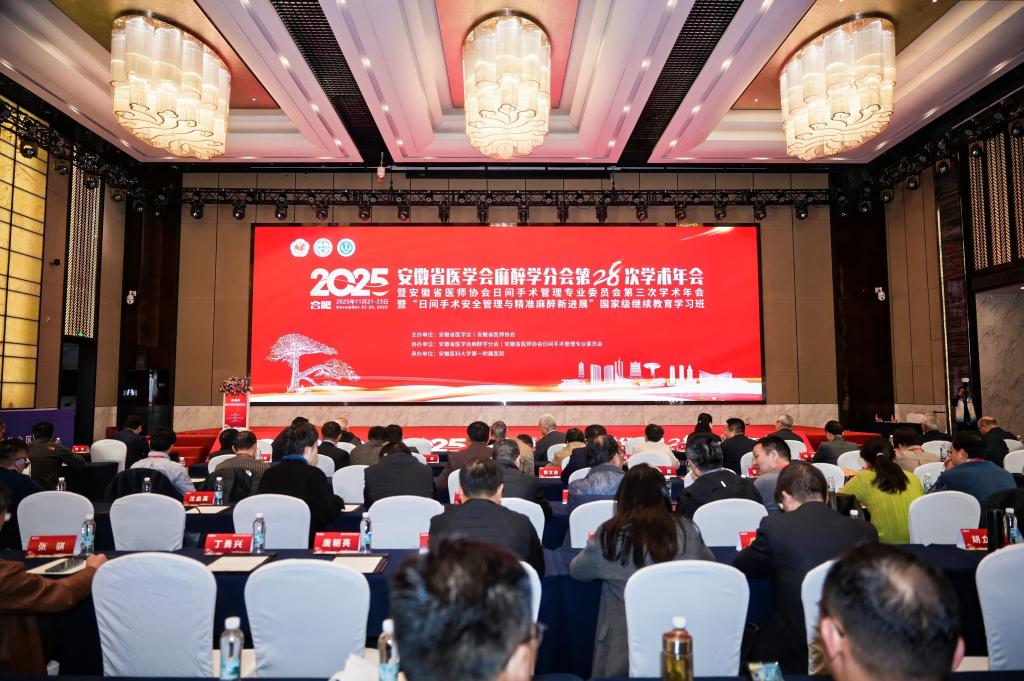 11月21日至23日,由安徽省医学会、安徽省医师协会主办,我院承办的安徽省医学会麻醉学分会和安徽省医学会麻醉学分会第28次学术年会暨安徽省医师协会日间手术管理专业委员会第三次学术年会暨“日间手术安全管理与精准麻醉新进展”国家级继续教育学习班在合肥顺利举办。安徽医科大学学术副校长张智,我院副院长李小虎,中华医学会麻醉学分会候任主任委员、首都医科大学宣武医院王天龙教授,安徽省医师协会秘书长颜雨春及安徽省医学会麻醉学分会主任委员、我院麻醉科主任刘学胜出席会议。开幕式由我院陈立建教授与中国科学技术大学第一附属医院谢言虎教授共同主持。