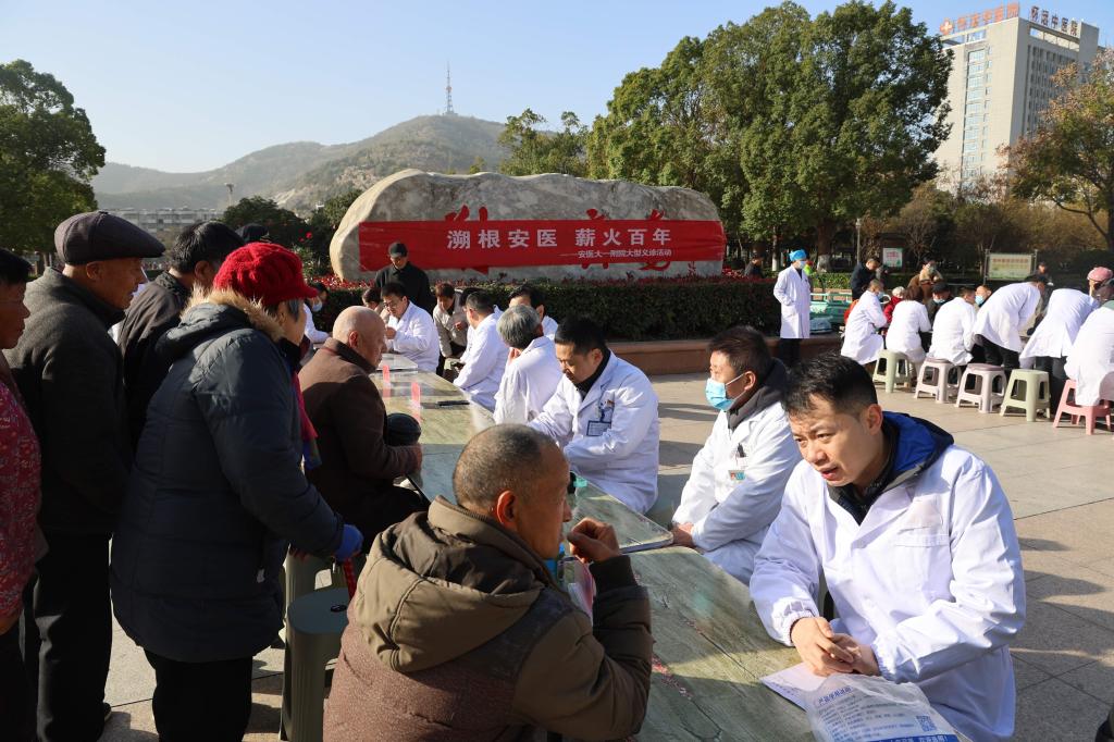 活动期间,来自我院普外科、骨科、耳鼻喉科、烧伤科、急诊外科、重症医学科、疼痛科、口腔科、老年医学科、肿瘤内科、皮肤科的12位临床专家在怀远县荆山广场开展了“溯根安医薪火百年”义诊活动。